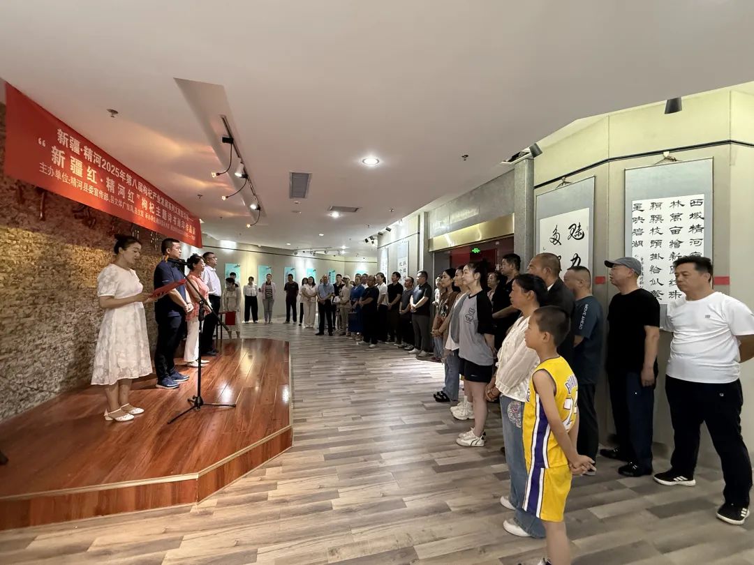 在七一建党节来临之际,6月26日,由精河县委宣传部、县文体广旅局、县文联联合举办的新疆·精河2025年第八届枸杞产业发展系列文商旅活动——“新疆红·精河红”枸杞主题诗书画印作品展在县美术馆开幕。县政协党组成员、副主席邓海红出席开幕式。县直各相关部门干部职工及文艺爱好者60余人参加开幕式。