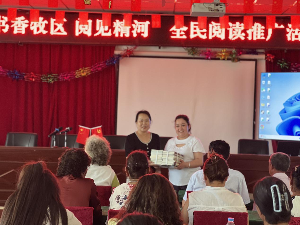 随后,精河县图书馆向哈日托热村捐赠了历史故事、生活百科等类型的图书,既为牧区群众提供更多元阅读选择,也充实了村图书室藏书量,助力打造“人人爱读书、处处有书香” 的乡村阅读氛围。