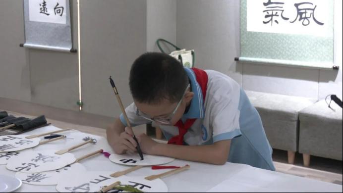 “我学习书法已经4年了,今天很荣幸参加此次活动,我把自己创作的书法作品扇子送给了参加活动的叔叔阿姨。作为一名学生,今后我会好好学习,长大后为国争光,报效祖国。” 书法爱好者张嘉祺说道。