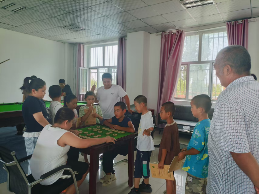 此次活动内容丰富,包括三项核心内容:一是观动画忆历史,通过观看建军主题动画短片,以生动的画面、通俗的语言,让孩子们直观感受解放军战士保家卫国的坚定信念与无畏精神;二是谈感想话未来,观影结束后,引导孩子们分享感悟,随后,工作人员围绕抗战历史小知识、八一建军节由来等内容提问,孩子们积极抢答;三是赛竞技扬风采,为进一步激发孩子们的拼搏精神,活动还设置了象棋友谊赛和乒乓球趣味赛。活动最后,工作人员为参与比赛的孩子们发放了奖品,鼓励他们将活动中的感悟化为成长的动力,以昂扬姿态传承红色精神。