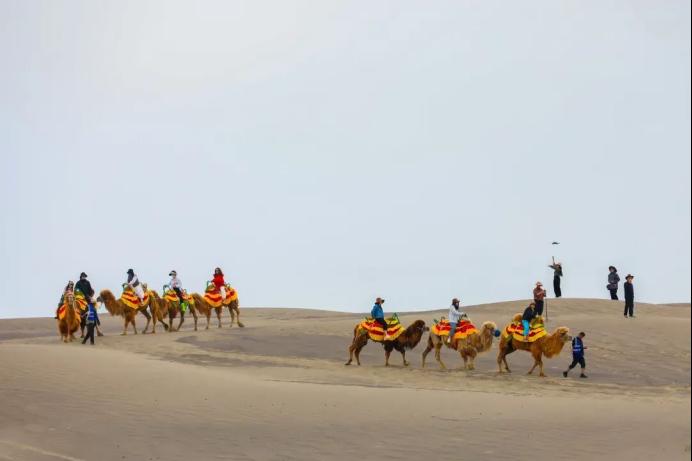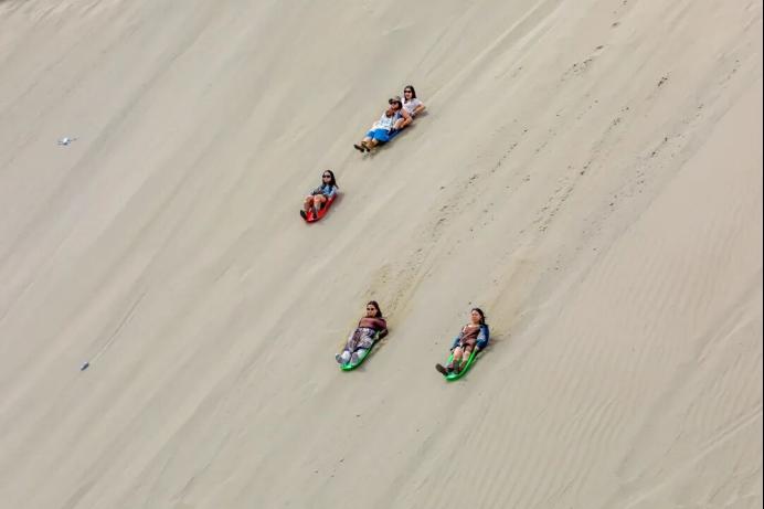 游客李新立说:“国庆假期专门带着家人来玩,这边沙漠风景特别好,爬沙比赛也有意思,孩子玩得不想走,我们一家人都特别尽兴。”