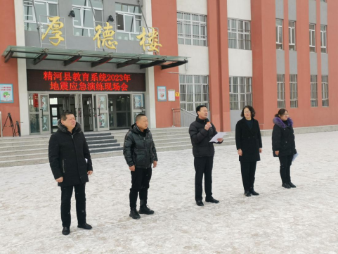 2023年2月15日11时45分,精河县教育系统,开展2023年地震应急演练活动。模拟精河县境内2月15日11时45分发生6.2级地震,教育系统机关及各学校立即启动地震应急预案,开展四级响应。演练分为四个环节,首先是桌面推演,其次为就地避震和疏散演练,第三是机动集结汇报,第四为实战演练。演练队伍分设疏散、救援、医疗、物资、安保、消杀、信息等7个应急小组。各小组既独立各司其职,又相互协同配合。很好地完成抢险救灾任务。此次演练,由县教育局,应急管理局主办,县二中承办,各学校主要领导携人参加。主演练场在县二中,各学校下设分演练场,即各级学校广大师生,配合主演练场,同时同步开展就地避震和疏散演练。全县教育系统共有27所学校,共计19124人参与演练。 州党委教育工委副书记巴特尔,携州教育局,州应急局、州消防支队,州公安局,州市监局前来主演练场,参与并督查演练全程。县教育局党组副书记,局长高峰任总指挥,县二中党总支书记陈欣担任现场指挥长,校长夏慧担任副指挥长。应急管理局特聘工程师齐建担任主持并进行技术指导。