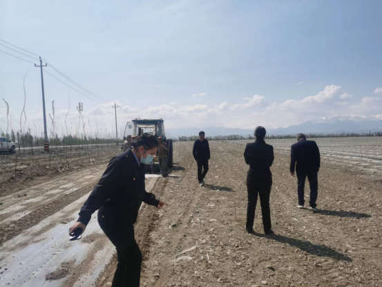 魏娟科长一行深入灾区,实地查看棉花受灾情况,了解受灾群众的实际需求。发现棉花目前处于青苗期,受灾导致覆膜、补种、重播等。为了帮助受灾农民解决棉花种植所面临的困难,魏娟科长一行还积极对接保险理赔事宜,并与当乡镇场农办、应急办、保险公司工作人员进行了交流,协调灾后生产工作。