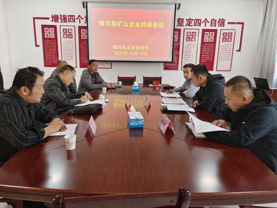 2023年10月18日精河县召开矿山企业约谈会。约谈精河县部分矿山企业法人、矿长,开展安全警示教育集中约谈。精河县应急管理局党委书记、副局长余志勇出席会议并做要求。