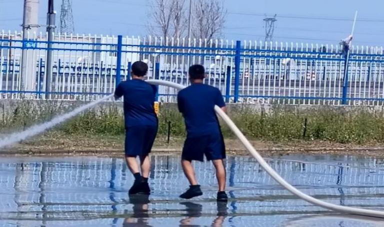 在训练场上,消防员们进行了水带连接、喷水作业等基础技能训练。大家密切配合,熟练操作消防水带,精准控制喷水方向与力度,展现出良好的业务素养和协作能力。通过反复训练,不断强化灭火操作的熟练度与精准度。
