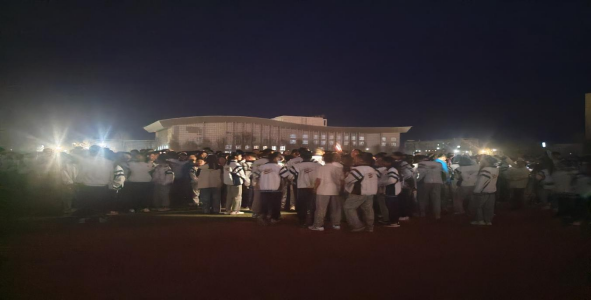 随后开展夜间实战疏散演练,模拟晚自习期间突发地震,全校15个班级、1690余名师生快速避险、有序撤离,全程规范处置照明中断、人员受伤等突发情况,仅用2分28秒完成全员安全集结,演练紧凑高效、成效明显。