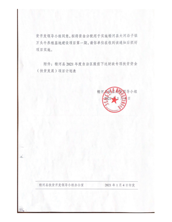 2021年,博州财政局下达精河县专项扶贫资金25万元,按照县扶贫开发领导小组办公室《关于下达2021年自治区提前下达财政专项扶贫资金计划的批复》及项目计划表,现将有关资金安排使用情况公示如下: