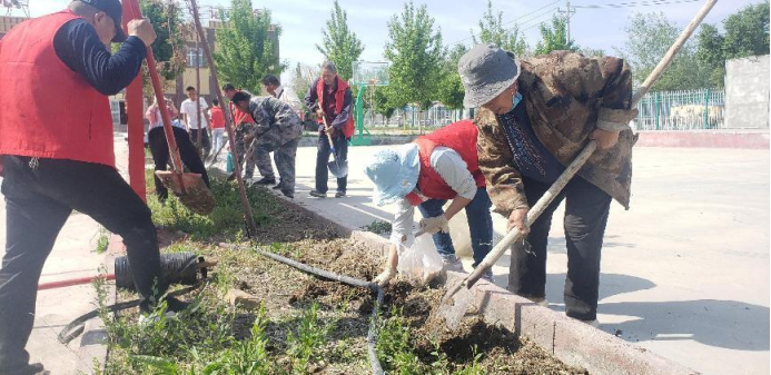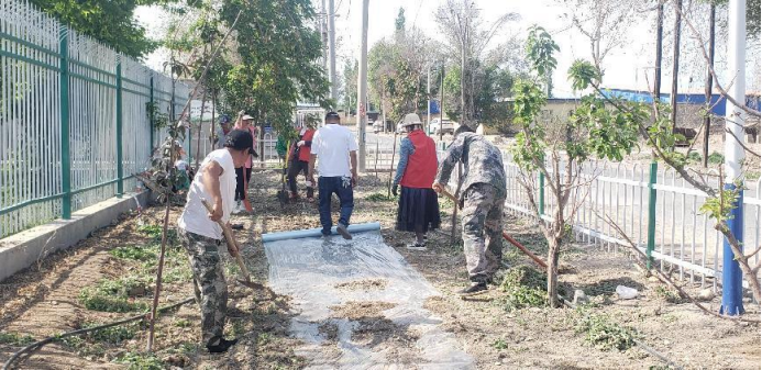 又是一年芳草绿,增花添绿正当时。为进一步发挥单位对“访惠聚”工作队的后盾作用,助力“访惠聚”干部做好各项工作,5月17日上午,精河县医保局党组成员、副局长刘卫洲带领9名干部来到伊吉林莫墩村,协同伊吉林莫墩村党员干部共33人开展志愿服务,为进一步助力乡村文化振兴,推动文化润疆工程,采购了花卉和花种,在村委会院内院外进行种植。