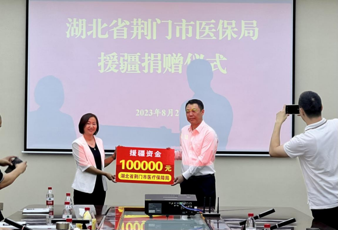随后,举行援助资金捐赠仪式,湖北省荆门市医疗保障局为精河县医疗保障局捐赠10万元援疆资金。