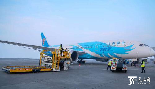 2月6日,第三批新疆支援湖北医疗队所乘坐的南航包机正在做起飞前的准备。 南航新疆分公司供图