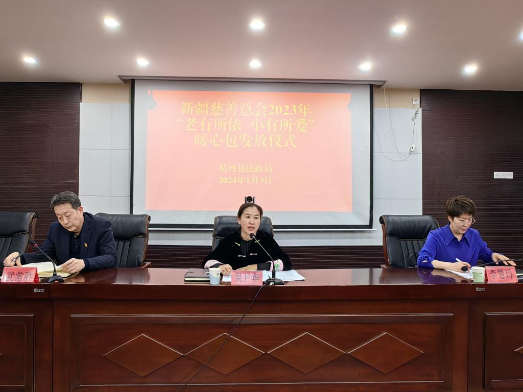 为进一步弘扬中华民族尊老爱幼的传统美德,奉献爱心,传递真情,为困难群众送上一份温暖和祝福,1月3日,精河县民政局开展“老有所依 小有所爱”暖心包发放活动。各乡(镇、场)、街道民政分管领导、民政办主任、各养老机构负责人共计30人参加。县人民政府副县长吴开华出席活动并讲话。