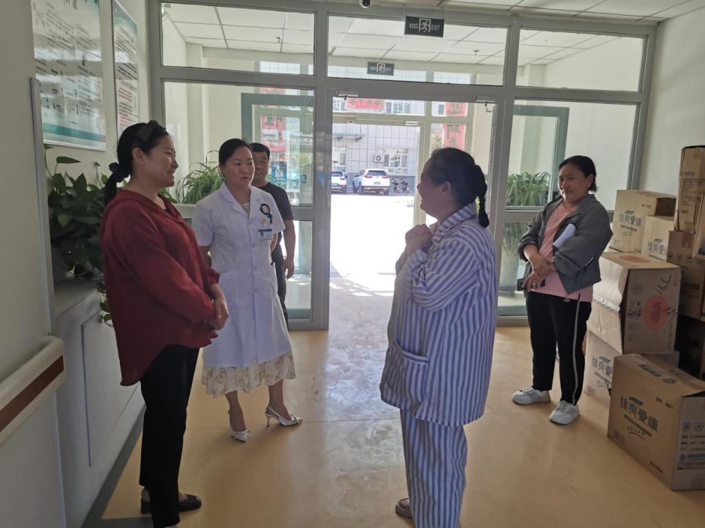 李慧玲书记听取了精河县人民医院心理卫生中心孟主任及精河县社会综合福利院孟·新娜院长介绍精神病患者在院治疗期间的生活、就医保障情况。患者刘香君一直以来胆囊不好,在一次湖北专家来坐诊时专门为她安排了一次胆结石手术,手术过程中发现患者子宫肌瘤也特别大需要摘除,因患者身份特殊,紧要关头为了患者生命安全,在湖北专家的指导下肝胆科和妇产科密切配合,同一时间成功完成了两项手术。如今刘香君病情已明显好转,在病区主动担任班长一职,协助医护人员开展各项工作,医护人员也给她起了个好听的名字叫“小助手”。看着刘香君在病区组织患友们用餐的背影,很难想象她几年前入院时的狂躁,孤僻,不安,无助的模样。