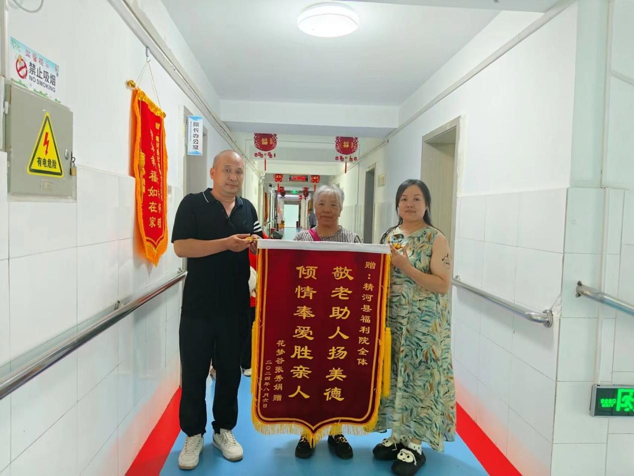 精河县社会综合福利院一直以来,秉着“以人为本、关爱至上”的服务理念,不断提升服务质量,为老人提供优质、贴心的服务。家属赠送锦旗,是对福利院工作的肯定和鼓励,更是对全社会尊老敬老传统美德的一次弘扬和传承。