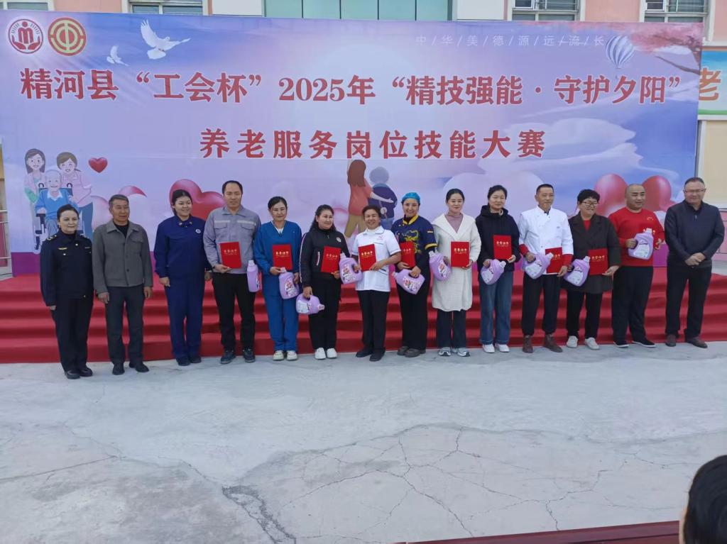 10月17日,以“精技强能·守护夕阳”为主题的精河县“工会杯”2025年养老服务岗位技能大赛在县社会综合福利院举行。本次大赛由精河县民政局、县总工会、县社会综合福利院联合主办,旨在全面提升养老服务从业人员专业技能水平,搭建交流展示平台,推动养老服务专业化、规范化发展。