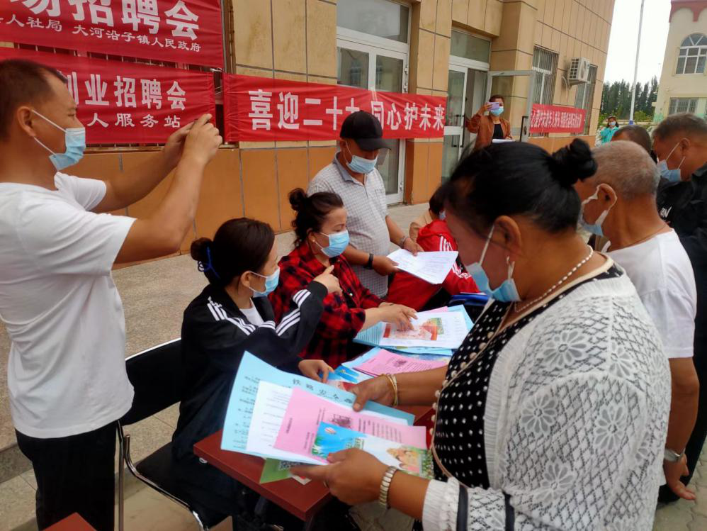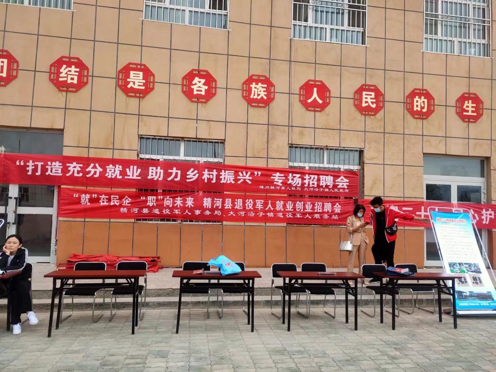 为发挥用人单位吸纳就业主渠道作用,帮助农村劳动力实现稳定就业,精河县人社局、精河县大河沿子镇人民政府于2022年5月31日在乡村振兴示范村大河沿子镇呼和哈夏南村联合组织开展了以“打造充分就业 助力乡村振兴”为主题的专场招聘会。