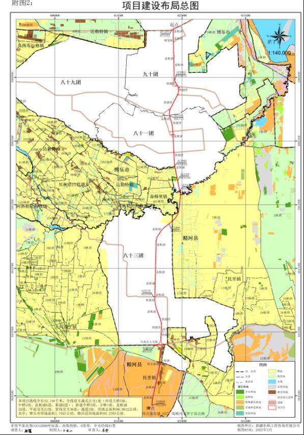 第五师双河市G577线沙山子~G219公路工程拟使用精河县林地选址具体位置如图所示: