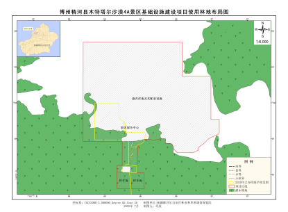 博州精河县木特塔尔沙漠4A景区基础设施建设项目拟使用林地选址具体位置如图所示: