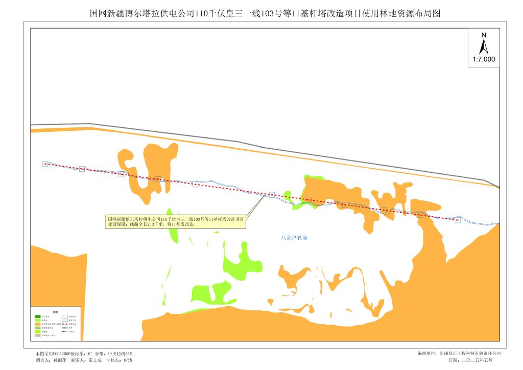 八、拟占用林地选址:国网新疆博尔塔拉供电公司110kV皇三一线103号等11基杆塔改造项目拟使用林地选址具体位置如图所示:
