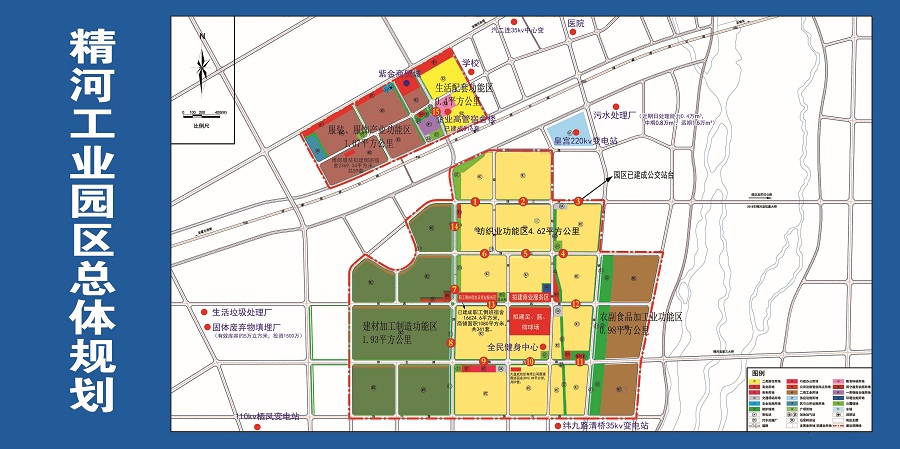 3.建材制造加工产业功能区(1.93平方公里):已形成15万根水泥杆,5000根涵管、18万㎡复合板、7000杆路灯、100万吨方解石衍生环保新型建材、3.6万樘防盗门、600万张人造板、2.5万立方米苯板、1万㎡铝合金门窗制作、储备6万m³LNG、组装5万辆新能源消防车、环保车、三轮车、四轮车、低速车等各类特种车辆、组装1000台充电桩、80万吨氧化钙。