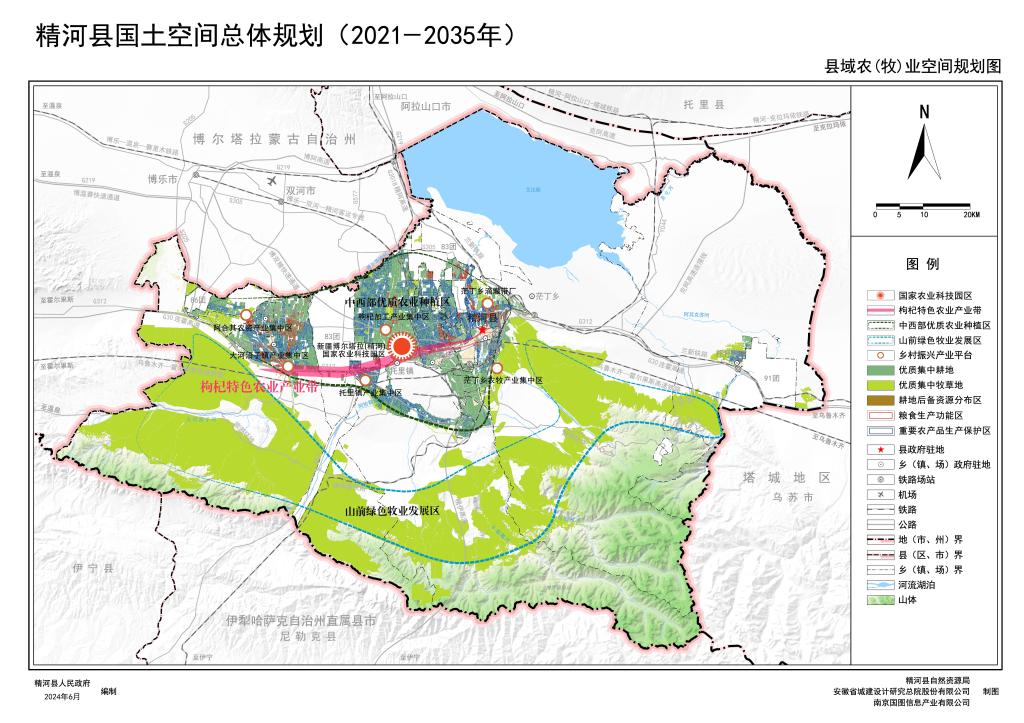 根据《中共中央国务院关于建立国土空间规划体系并监督实施的若干意见》(中发〔2019〕18号)要求,依据《全国国土空间规划纲要(2021—2035年)》《新疆维吾尔自治区国土空间规划(2021—2035年)》《博尔塔拉蒙古自治州国土空间总体规划(2021—2035年)》,精河县人民政府编制《精河县国土空间总体规划(2021—2035年)》(以下简称本规划)。本规划是对国家、自治区和博州国土空间总体规划的细化落实,对精河县国土空间保护、开发、利用、修复作出具体安排和综合部署,为支撑形成高质量发展的国土空间布局提供空间保障,是编制乡镇(场)国土空间总体规划、详细规划、相关专项规划和开展各类开发保护建设活动、实施国土空间用途管制的基本依据。