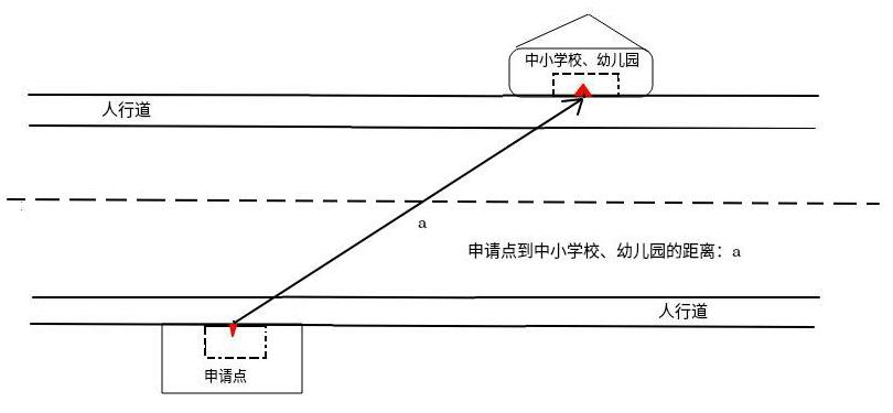 3.中小学、幼儿园有多个出入口的,分别测量申请点与每个出入口之间的距离,最终取最短距离。