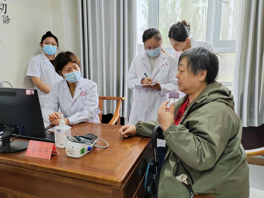 诊疗现场,各位专家耐心细致地为每位患者进行诊断与治疗,从询问症状及病史,再到体格检查和必要的辅助检查。对患者的疑惑和焦虑,专家们用温暖的语言给予详尽的解答和合理的建议。各位专家们有温度地诊疗得到了患者们的一致认可和好评。伊克呼都格村的张大爷说:“我们是附近的居民,这次听村医说卫生院邀请内地知名医院的援疆专家来义诊,我们早早来到卫生院候诊,平时很难挂到专家教授的号,现在在家门口就可以和专家交流咨询,极大地方便我们老年人。”