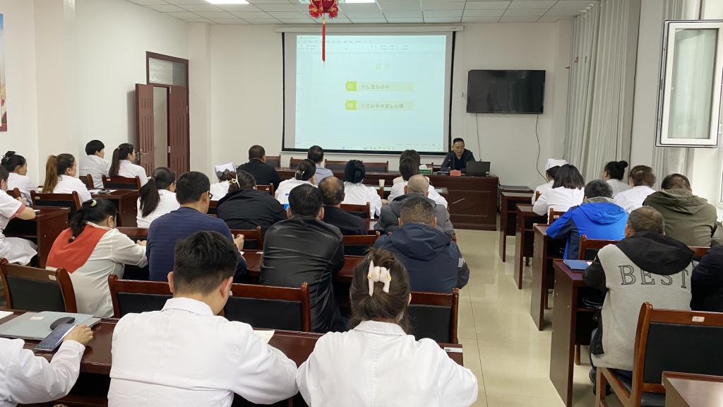 义诊结束后,常丽英博士还精心准备了符合基层的课件,为卫生院医护人员和村医授课,常丽英博士凭借丰富的临床经验和专业知识,深入浅出地讲解了眩晕疾病的诊疗误区与变迁,并且重点讲解了耳石症的临床表现、诊断及治疗方法。县人民医院神经中心魏锋副主任为大家讲解了脑卒中的识别和处理。