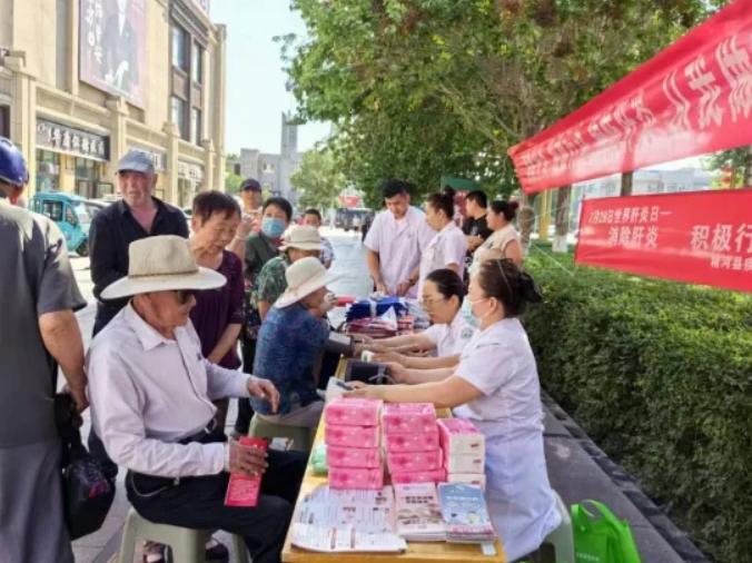 在第14个“世界肝炎日”来临之际,7月26日,精河县卫生健康委员会组织县人民医院、县疾病预防控制中心等5家医疗卫生机构在友好广场举办主题为“消除肝炎,积极行动”的义诊宣传活动。