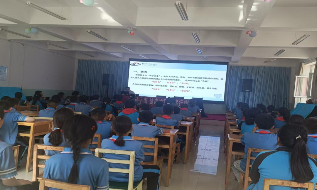 5月20日,阿合其农场卫生院走进阿合其农场中学,开展"吃动平衡、健康体重、全民行动"主题健康教育活动。活动现场,医务人员以通俗易懂的语言,结合儿童成长特点,阐释"吃动平衡"核心内涵,强调"合理膳食+科学运动"对预防肥胖、促进生长发育的重要性,向同学们讲解了“平衡膳食宝塔”、各类食物的营养成分及健康饮食的重要性。同时,重点强调了少吃零食、少喝含糖饮料、多吃蔬菜水果等健康饮食知识,并现场示范正确的洗手方法,引导同学们培养良好的饮食卫生习惯。