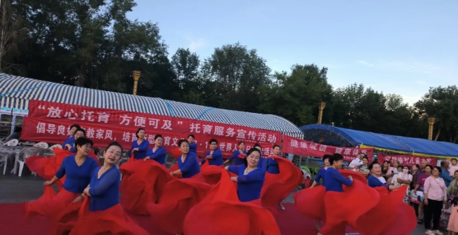 7月傍晚的精河县滨河亲水河岸广场上,精河镇计生协精心准备的文艺节目在这里上演,散步纳凉的人们纷纷驻足观看,曲艺表演三句半《婚育新风新时尚》,以轻松欢快的形式向群众宣传了优化生育政策,社区文艺爱好者的盛装舞蹈,展现了精河人民的美好生活。托育机构的孩子们通过器乐演奏和互动“体验课”向大家展示了托育服务的专业性及优质性,赢得现场观众的阵阵掌声。