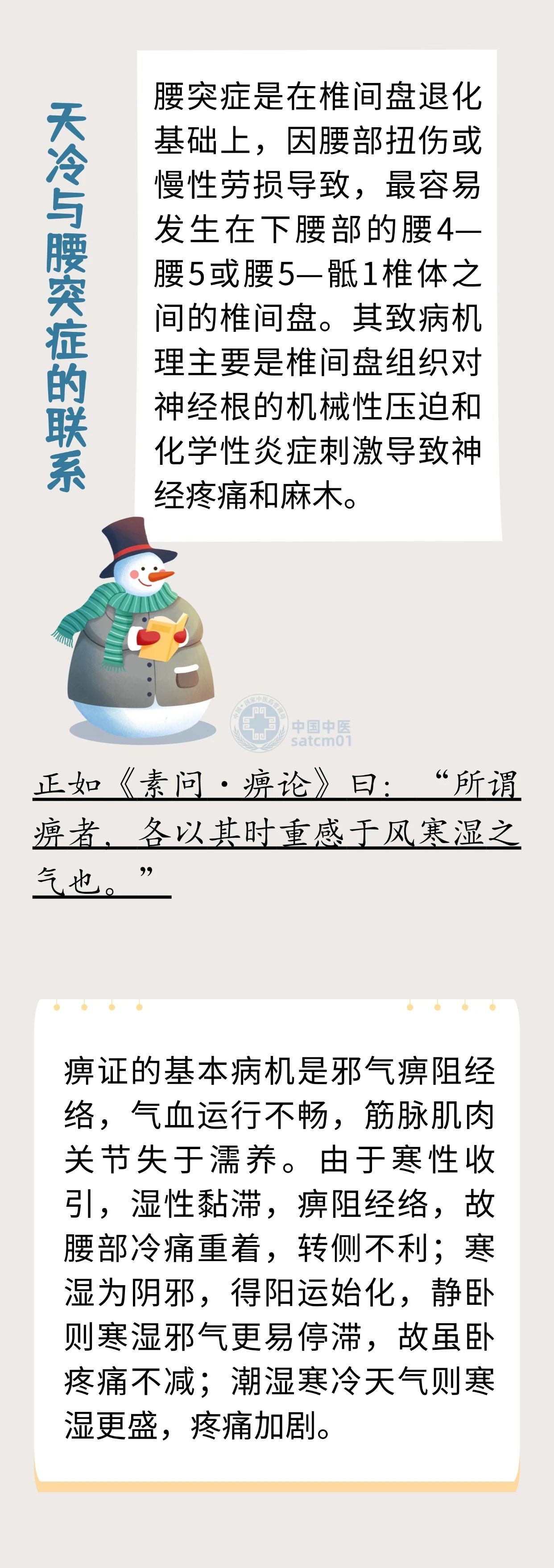 冬季到来,寒风凛冽,45岁的姜女士不久前因腰背部受风寒,出现腰痛伴左胯和大腿后外侧疼痛,这让她坐立不安,十分痛苦郁闷。姜女士到中医院骨科就诊,诊断为腰椎间盘突出症(以下简称“腰突症”),经中医综合治疗后终于有所缓解,能够重返工作岗位。需要注意的是,冬季降温,如不注重腰部保暖及养护,更易诱发和加重腰突症病情。
