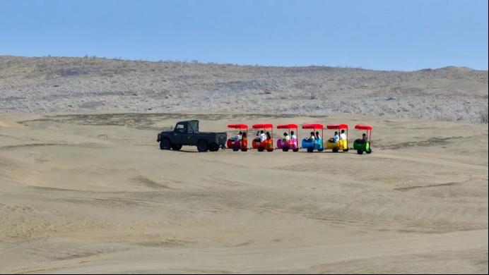 景区新增的“沙漠大脚怪”项目更是凭借独特魅力,成为新晋打卡点。凭借超大越野轮胎,能在连绵沙丘间平稳翻越、肆意驰骋,让游客饱览浩瀚沙海的壮美全景。“我是被名字吸引来的,原来是车的‘脚’又高又大,非常有意思,体验感非常好。”游客马雨婷体验后说道。