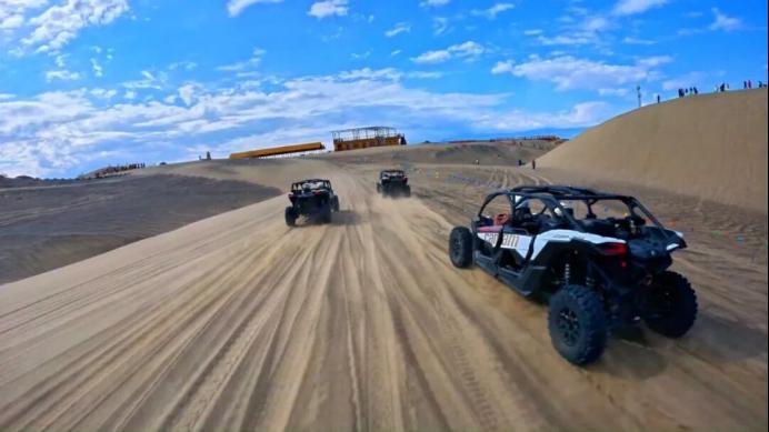 随着游客的到来,越野区内引擎轰鸣声此起彼伏,一辆辆越野车、沙漠摩托驰骋在起伏的沙丘间,让游客沉浸式体验极速飞驰的刺激快感。“在沙漠里开越野车太刺激了,尤其是在无垠沙海中极速驰骋,让人不禁感叹沙漠的壮阔。”游客庄青凡体验完越野项目后,难掩兴奋之情。