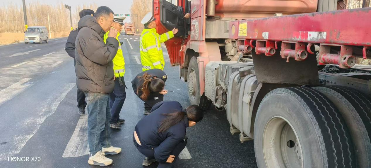 2025年12月4日下午,博州生态环境局精河县分局牵头,联合县公安局交警大队、县交通运输综合行政执法队,在老火车站公安检查站及北外环路开展重型车辆尾气排放专项路检工作。