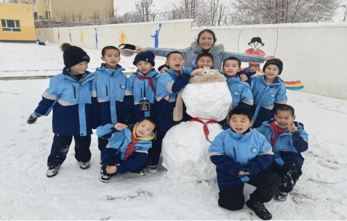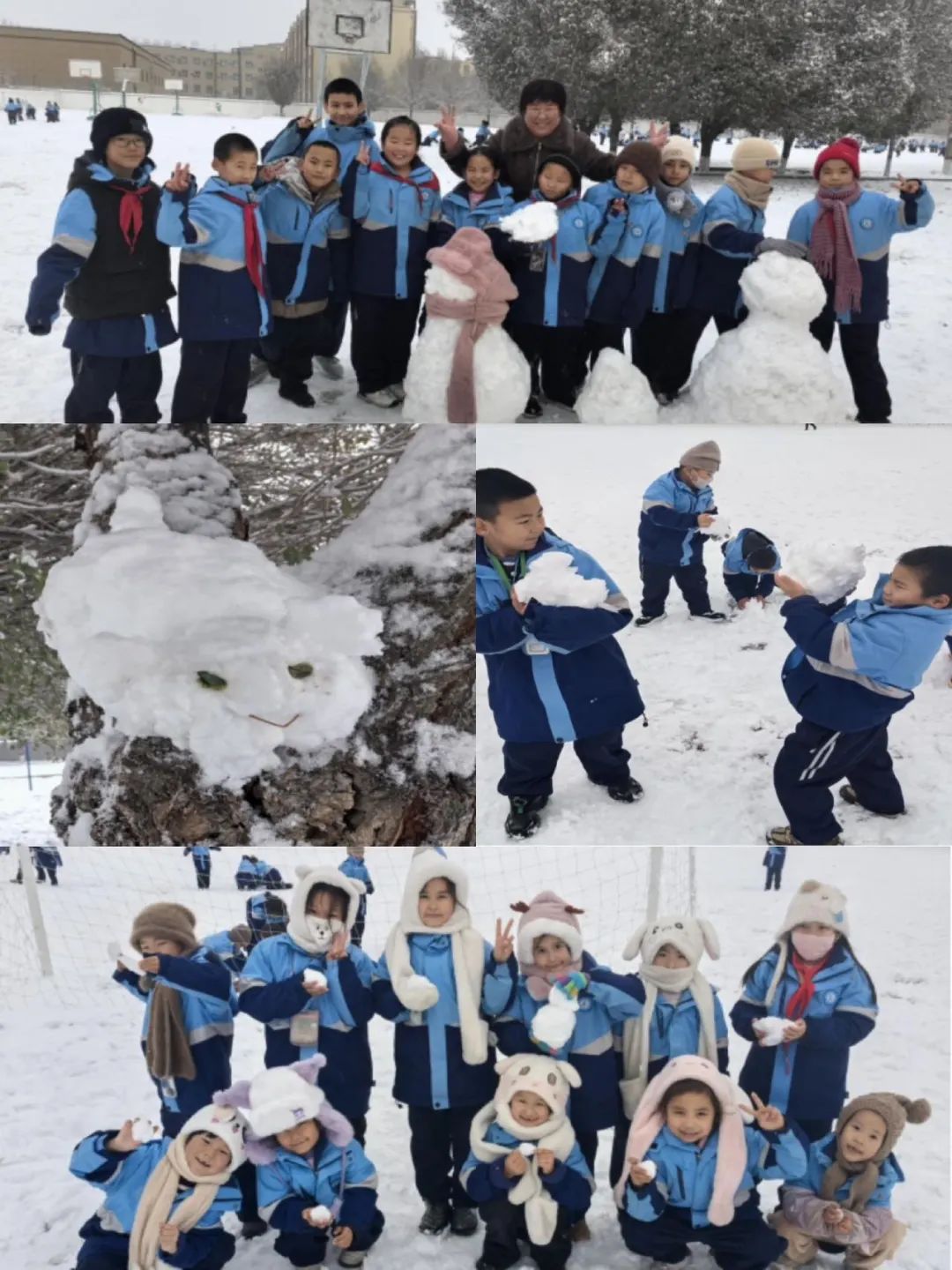 操场上,皑皑白雪如同一片天然的创作画布,同学们在老师的带领下,摩拳擦掌、跃跃欲试,分别开启了堆雪人、打雪仗等活动。同学们灵活地穿梭在“枪林弹雨”中,有的凭借敏捷身手巧妙躲避,有的则勇往直前发起冲锋,操场上白雪飞溅,每一张红扑扑的小脸上都写满了兴奋与激动。在堆雪人的场地上,同学们分工明确,有的负责滚雪球制作雪人的身体和头部;有的则发挥奇思妙想,四处搜罗“装饰材料”,为雪人安上俏皮的鼻子和眼睛,再给它戴上围巾、帽子,一个个栩栩如生、各具特色的雪人伫立在校园各处,仿佛在向大家展示冬日里最纯真的笑容。还有些同学发挥聪明才智,塑造出灵动俏皮的小动物形象,让学生们在动手实践中提升了审美与动手能力。